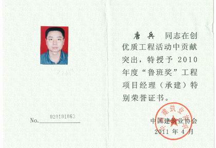 唐兵 時間:2012-04-10 7664 唐兵,現任深圳公司七處二工區副主任。先后擔任過5個重點大型超高層項目的技術負責人或項目經理,參與的施工工法、項目管理成果、實用新型專利等獲國家表彰,曾獲“江蘇省建筑業質量管理先進個人”稱號,被授予“創魯班獎工程項目經理特別榮譽證書”。