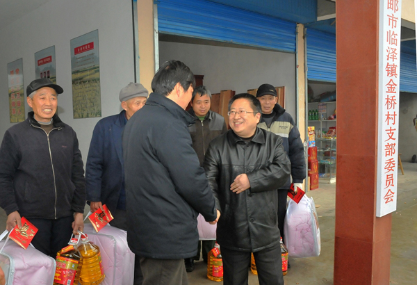 公司領導節前扶貧慰問 時間:2010-02-10 5441 2月10日,公司副總經理程杰一行冒雨赴公司對口扶貧的高郵臨澤鎮金橋村進行走訪慰問。程總參觀了由我公司支持建成的金橋村村民服務中心,了解去年該村的基本情況和今年的發展打算,程總希望金橋村今后要在扶持特色產業上作文章,努力形成自力更生,自我造血的能力。隨后,程總看望了當地低收入貧困農戶,給他們送去節日的問候和慰問品。 金橋村地處里下河地區腹地,位于高郵、寶應、興化三縣交界處。從2008年公司定點扶貧該村以來,公司著力幫扶改善交通環境,發展高效農業,取得一定成績,受到市扶貧辦的肯定。