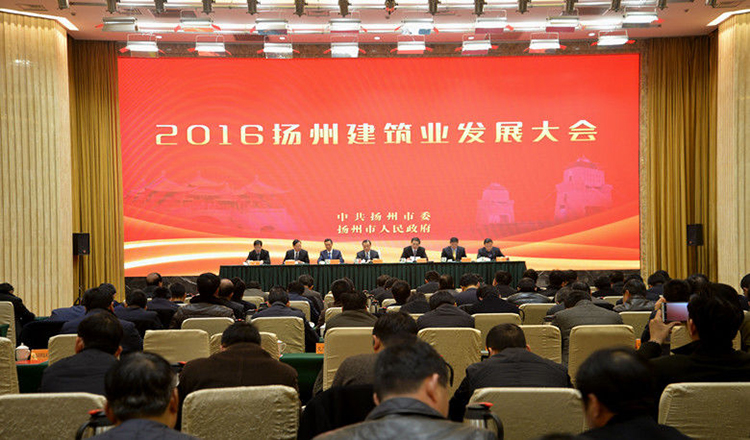 正月初七上班第一天,2016揚州建筑業(yè)發(fā)展大會在揚州會議中心召開,揚州市四套班子領(lǐng)導(dǎo)、政府有關(guān)部門和全市建筑業(yè)骨干企業(yè)負責(zé)人參加,陸金龍、宗有農(nóng)、吳士茂等公司領(lǐng)導(dǎo)代表建工控股和江蘇華建參加會議。