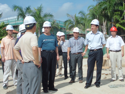 6月6日下午,海南省委書(shū)記羅保銘,省委常委、副省長(zhǎng)、三亞市委書(shū)記姜斯憲冒著高溫來(lái)到我公司承建的鹿回頭國(guó)賓館二期擴(kuò)建項(xiàng)目現(xiàn)場(chǎng)視察慰問(wèn),公司副總經(jīng)理、海南分公司總經(jīng)理王宏陪同視察。羅書(shū)記對(duì)華建的施工進(jìn)度和質(zhì)量表示滿意,同時(shí)要求華建把工程當(dāng)做作品來(lái)抓,按時(shí)交付代表海南水平的精品項(xiàng)目。羅書(shū)記高度評(píng)價(jià)江蘇華建的綜合實(shí)力,認(rèn)為華建在海南承建了許多重點(diǎn)項(xiàng)目,是一支有實(shí)力、善打硬仗的隊(duì)伍。姜斯憲副省長(zhǎng)希望華建在海南繼續(xù)保持良好發(fā)展勢(shì)頭,為江蘇建筑業(yè)爭(zhēng)光。