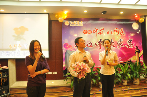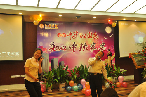 公司舉辦2012中秋家宴 時間:2012-10-06 4383 9月29日,公司在揚州西園大酒店隆重舉辦“濃情中秋,歡樂國慶——2012中秋家宴”,公司總部機關、在揚分支機構和駐外分公司回揚休假的經營層人員約百人共聚一堂,喜迎中秋、國慶佳節的來臨。家宴上,無論是領導還是普通員工,大家縱情高歌,歡樂表演,充分展現了華建大家庭其樂融融的喜慶氣氛,同時展示了華建人昂揚向上的精神風貌。