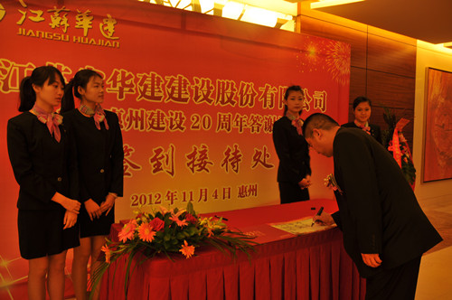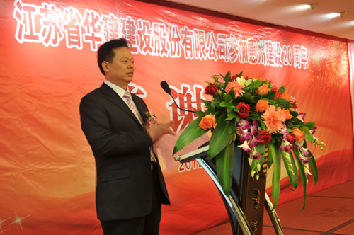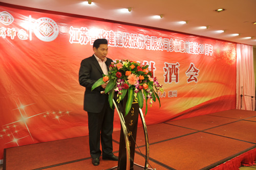 11月4日,公司在惠州隆重舉辦參加惠州建設(shè)20周年答謝酒會,副董事長、總經(jīng)理宗有農(nóng)主持并作開場致辭。惠州市有關(guān)政府部門、部分合作方企業(yè)的負(fù)責(zé)人,華建聯(lián)盟成員單位負(fù)責(zé)人,公司董事、監(jiān)事和高管等130余人出席酒會。惠州公司總經(jīng)理華恒榮介紹了公司參加惠州建設(shè)二十年的有關(guān)情況。惠州市工商聯(lián)主席、恒宇實業(yè)發(fā)展公司董事長楊滿芳代表合作方發(fā)言,惠州市住房和城鄉(xiāng)規(guī)劃建設(shè)局副局長陳訓(xùn)政代表政府主管部門致辭,分別對江蘇華建進惠施工二十周年表示祝賀。公司董事長陸金龍代表總部對惠州市有關(guān)政府部門、相關(guān)合作方和社會各界人士給予公司的關(guān)心和支持表示誠摯的感謝,并表達(dá)了進一步加大支持力度、加強戰(zhàn)略合作、加快科學(xué)發(fā)展的意愿。