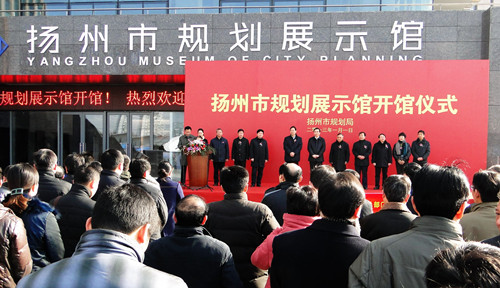 2013年元旦上午9時48分,由公司代理建設的揚州市規劃展示館正式開館,市長朱民陽出席開館儀式并剪彩,副市長聞道才、市文化博覽城建設領導小組副組長洪軍等出席,董事長陸金龍、副總經理程杰等公司領導參加活動。
