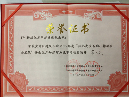 6月25日下午,上海公司外灘源項(xiàng)目部參加了由上海市黃浦區(qū)建設(shè)和交通委員會(huì)主辦的黃浦區(qū)建筑工地2013年度“強(qiáng)化安全基礎(chǔ)、推動(dòng)安全發(fā)展”安全生產(chǎn)知識(shí)智力競(jìng)賽并奪得第一名。