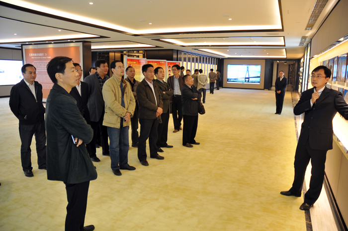 江蘇華建企業展示中心正式啟用 時間:2013-11-08 3615 11月8日,江蘇華建企業展示中心舉行揭牌儀式正式啟用,標志著華建對外形象的展示又多了一個全面展示的窗口。公司董事長陸金龍為展示中心揭牌并致辭,公司在揚領導吳士茂、程杰、錢啟明、王宏、陸俊等出席儀式。 企業展示中心位于揚州繁華地段的建設大廈,總面積近2000平米,企業展示區以文字、圖片、視頻等形式,從不同視角全面、直觀、有效地展現了公司發展歷程、區域公司風采、多元發展、精品工程、企業文化、企業榮譽等內容。展示中心同時配有小型會議室和接待場所,可安排公司一般性的商務談判和對外接待。