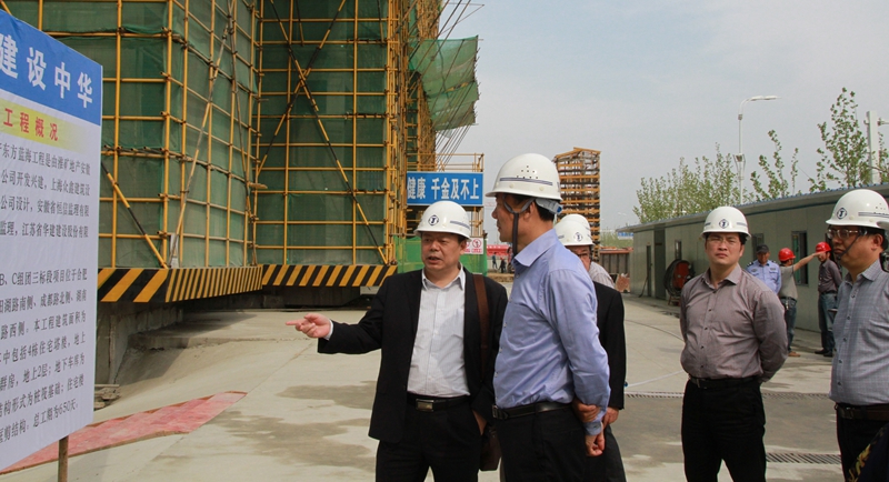 在項(xiàng)目現(xiàn)場華恒榮副總經(jīng)理向來訪領(lǐng)導(dǎo)簡要介紹了江蘇華建在安徽市場的發(fā)展戰(zhàn)略及東方藍(lán)海B、C組團(tuán)三標(biāo)段項(xiàng)目的施工情況。聞市長對施工現(xiàn)場、施工組織非常滿意,并再三強(qiáng)調(diào)要抓好安全工作,爭創(chuàng)優(yōu)質(zhì)工程,為揚(yáng)州建筑業(yè)在安徽市場的發(fā)展做出積極貢獻(xiàn)。