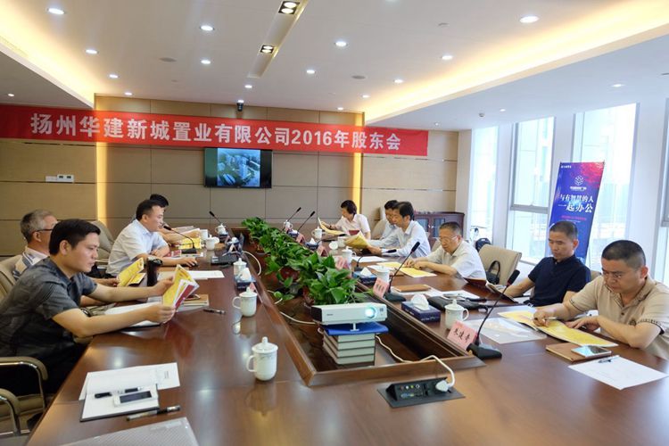 6月15日,華建地產集團在華城科技廣場召開了揚州華建新城置業股東會,會議由地產集團董事長程杰主持,公司董事長陸金龍、監事會主席吳士茂及各股東單位代表、公司經營層出席會議。