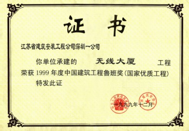 無線大廈(現(xiàn)名國通大廈)位于福田區(qū)新洲,建筑面積73069M2,高度201.5M,地下室2層,地上43層,是一座高智能化的電信寫字樓,結(jié)構(gòu)設計為鋼筋砼框架一筒體結(jié)構(gòu),8-32層為無粘結(jié)預應力樓板砼,工程總造價6億元。工程于1995年6月開工,1997年12月竣工,施工中主要應用了無粘結(jié)預應力砼、高強泵送砼、粗直徑鋼筋連接、外墻干掛花崗巖等新技術(shù)。榮獲深圳市、廣東省、江蘇省的優(yōu)質(zhì)樣板工程,“江蘇省新技術(shù)應用示范工程”、江蘇省“揚子杯”獎和99年度國家“魯班獎”。