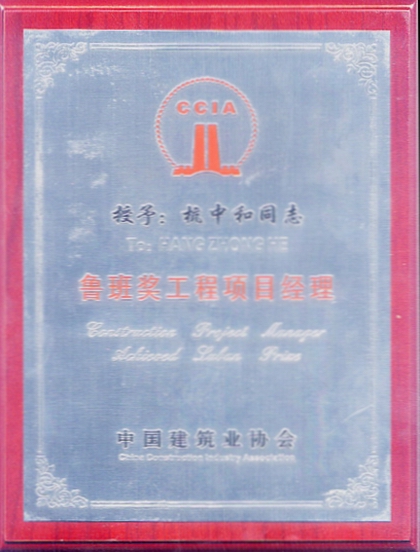 杭中和 時間:2012-04-10 8201 杭中和,高級工程師,高級經濟師,現任深圳公司七處黨支部書記。曾任七處主任多年,先后擔任深圳招商銀行大廈等一批高大難工程的項目經理,創魯班獎工程1項,曾獲“全國建筑業企業優秀項目經理”稱號,被授予“創魯班獎工程項目經理特別證書”。